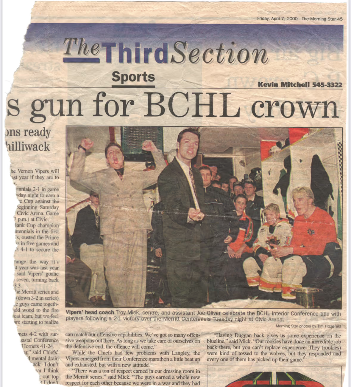 My path never led to the NHL or major junior, but hockey shaped who I am. I started in Abbotsford in 1990 and moved to Vernon in 1994, where the game became bigger than just playing. My parents opened Sportstraders, and Vernon Vipers players were regulars. That connection made me a stickboy in the late ’90s, when the Vipers were royalty. Sellout crowds, loud barns, and the Royal Bank Cup win — to 10-year-old me, it felt like I had won it too.